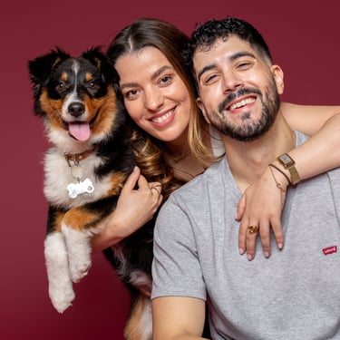 Um estúdio pensado para cães curiosos e famílias descontraídas. Aqui, os cães podem explorar livremente, os fundos mudam ao ritmo da sessão e os momentos acontecem de forma natural sempre com espaço para toda a família fazer parte da história.
