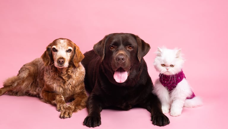 Oferecemos diferentes packs de fotos para capturar a essência do seu pet, onde toda a família é bem-vinda!